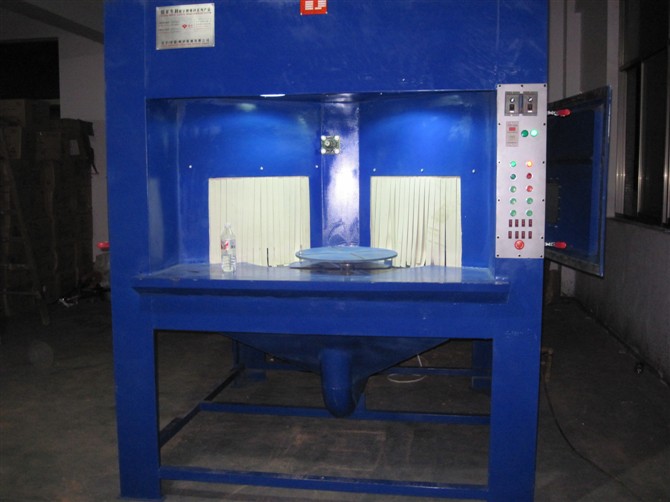 本机适用于针对贵公司产品的“烫熨斗”喷砂加工要求,设计的专用喷砂设备,消除外表的污垢,划痕及其他杂物,使表面达到哑光状态,同样可以用于其他的铝制品、电饭锅内胆、玻璃灯饰、亚克力灯罩、啤瓶、锻铸件、焊接件、热处理件、冲压歼击机加工件、五金件、弹簧、电子件的外表除锈、去氧化皮表面光亮及获得均匀的喷砂面和增加表面附着力或用于喷涂、电镀、油漆前的预处理的工序